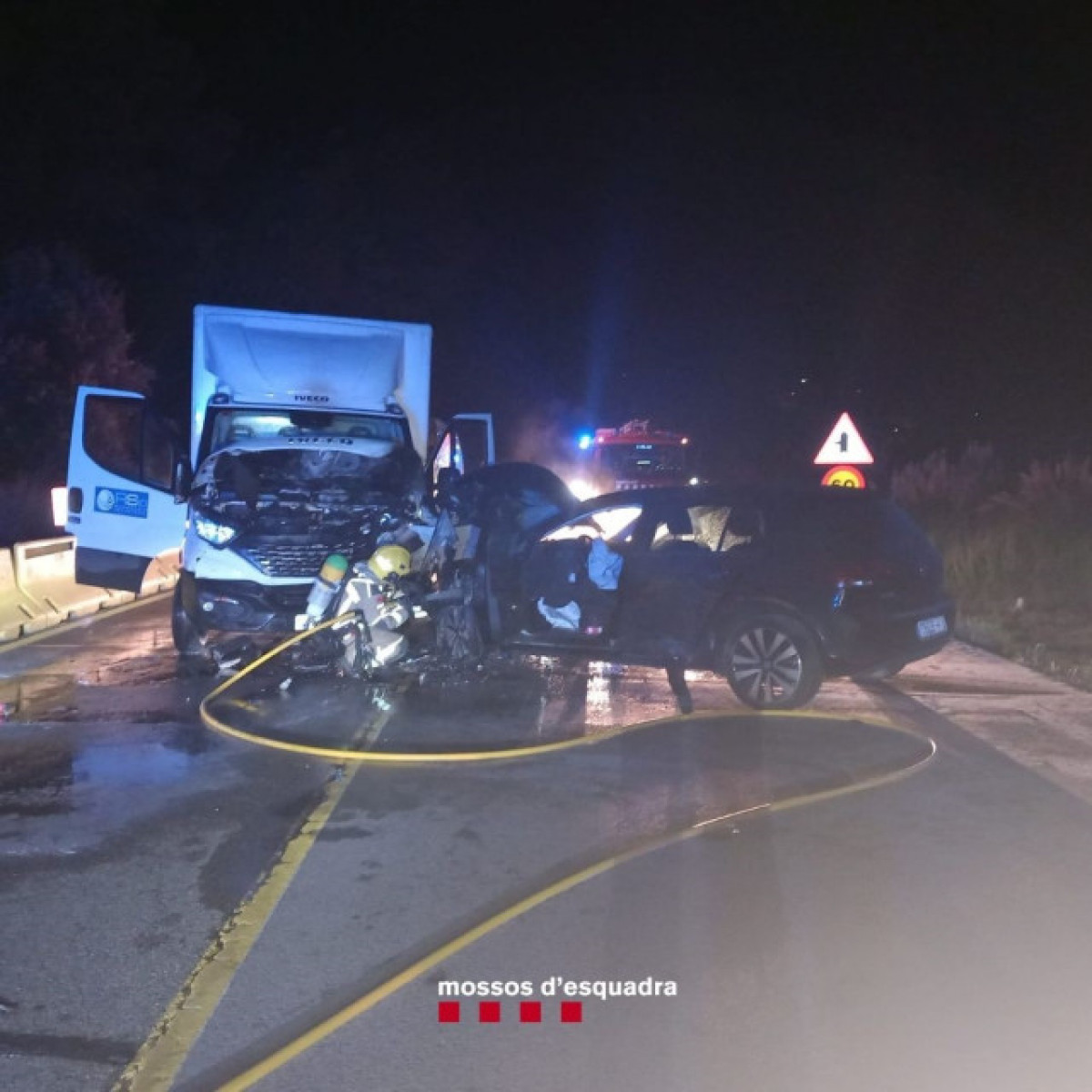 En un comunicat aquest dimecres, han explicat que el cotxe circulava en sentit Lloret de Mar (Girona) i va envair el carril contrari i va xocar frontalment amb el camió, que es va incendiar.
