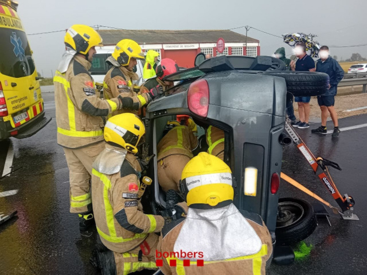 Tres dotacions dels Bombers de la Generalitat han excarcerat aquest dijous d'un cotxe la seva conductora, que conduïa sense carnet, després de xocar amb un altre vehicle a la TV-3454 a Deltebre (Tarragona).