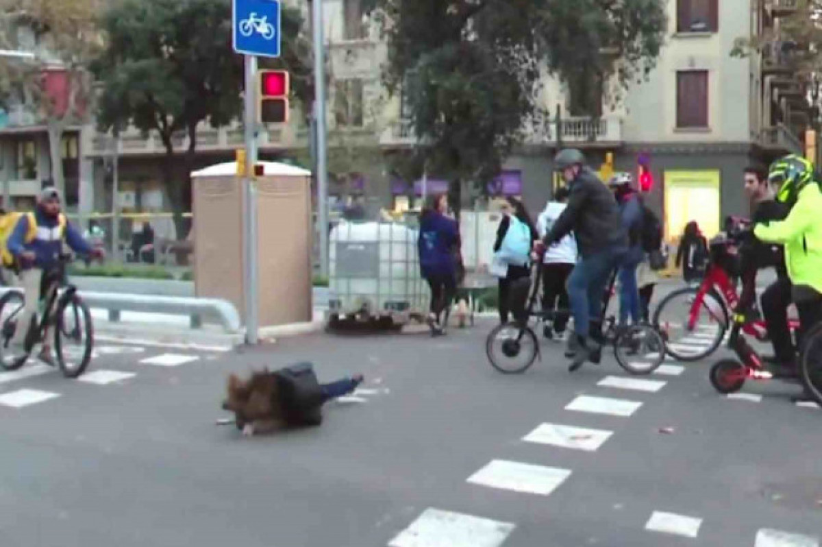 VÍDEO | Una dona cau a terra esquivant un patinet a la intersecció més caòtica de Barcelona