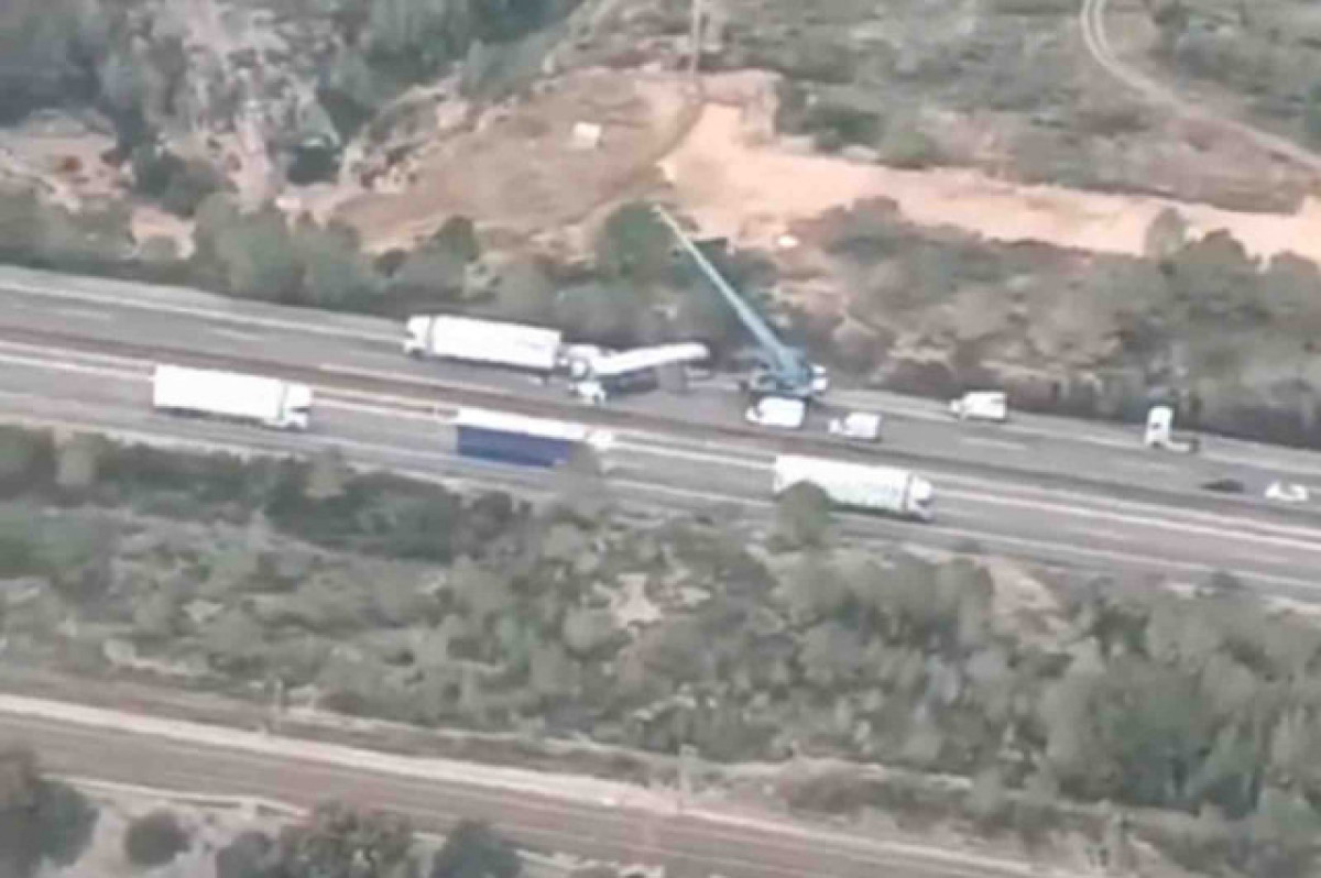 Embús total: Un camió bolcat a l'AP-7 deixa 13 km de retencions a Vandellòs