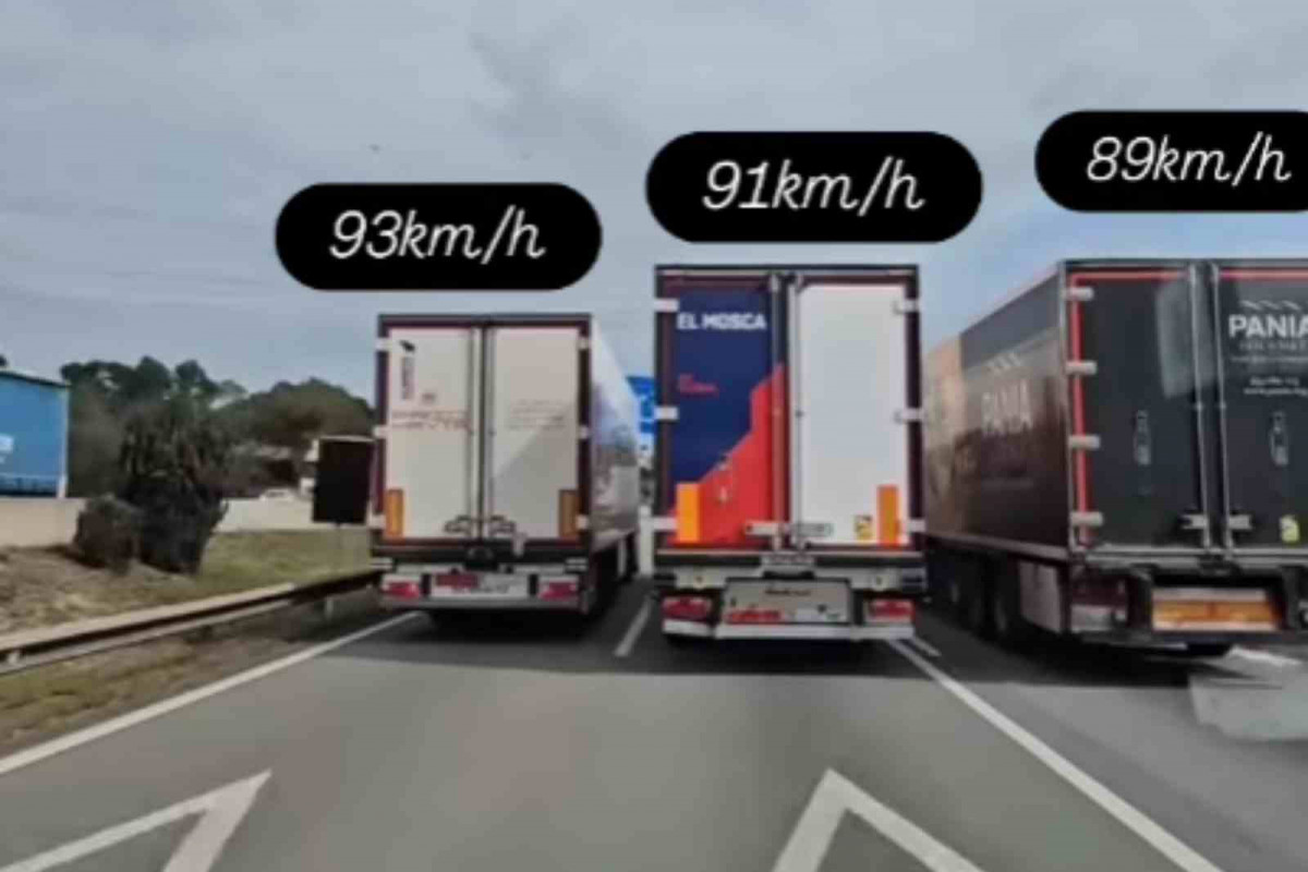Segons les imatges, els tres camions circulaven a velocitats mínimament diferents: el de la dreta a 89 km/h, el del centre a 91 km/h i el de l'esquerra a 93 km/h, fet que va provocar un avançament lent, perillós i il·legal. Els camions tenen prohibit utilitzar el carril esquerre en vies amb més de dos carrils per sentit, però, com mostra el vídeo, la normativa sembla no importar-los.