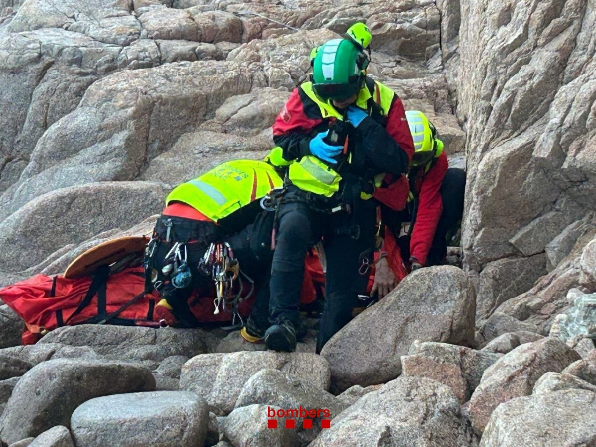 L'avís es va rebre a les 19.12 i, com el rescat marítim no era possible pel mal estat de la mar, es va activar un helicòpter i al Grup d'Actuacions Especials (GRAE) dels Bombers