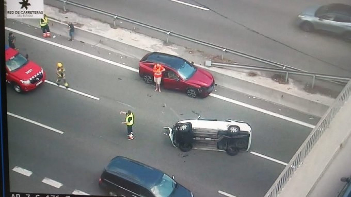 L'accident d'un cotxe que ha bolcat a l'AP-7 ha tallat aquest divendres a la tarda 2 carrils en sentit sud a l'altura de Gelida (Barcelona).