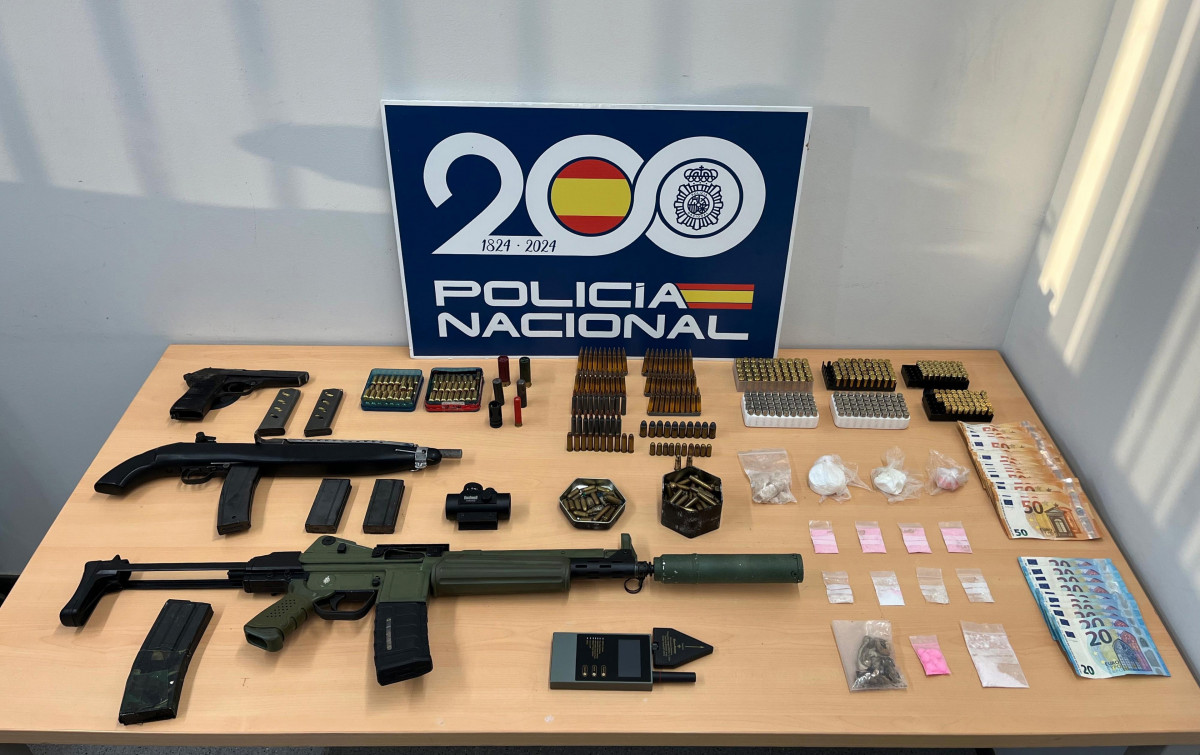 Durant els escorcolls realitzats als domicilis dels dos detinguts a Terrassa i Badalona, la Policia va localitzar un arsenal de notable perillositat que confirma el grau elevat d’amenaça que representava aquesta xarxa criminal. Entre el material intervingut destaca un fusell de combat, capaç de provocar greus danys en entorns urbans; un subfusell modificat per incrementar la seva potència i letalitat; i una pistola equipada amb silenciador, fet que revela una clara intenció d’operar amb discreció i planificació.