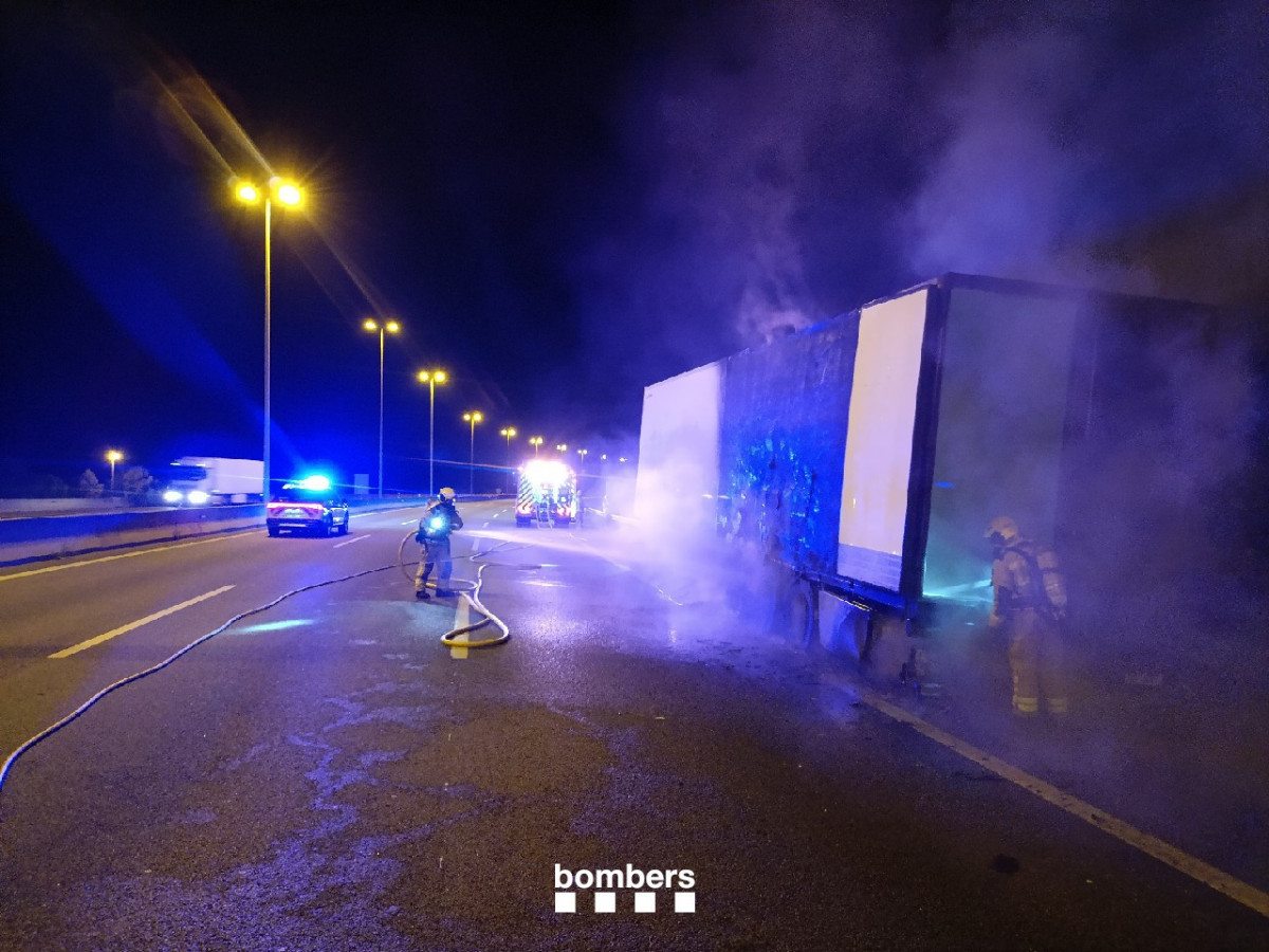 Un incendi ha afectat el 50% del remolc d'un camió a l'altura de Castellbisbal . L'incident es va registrar aquesta matinada, a les 03.23 hores, segons va informar el servei d'emergències 112.