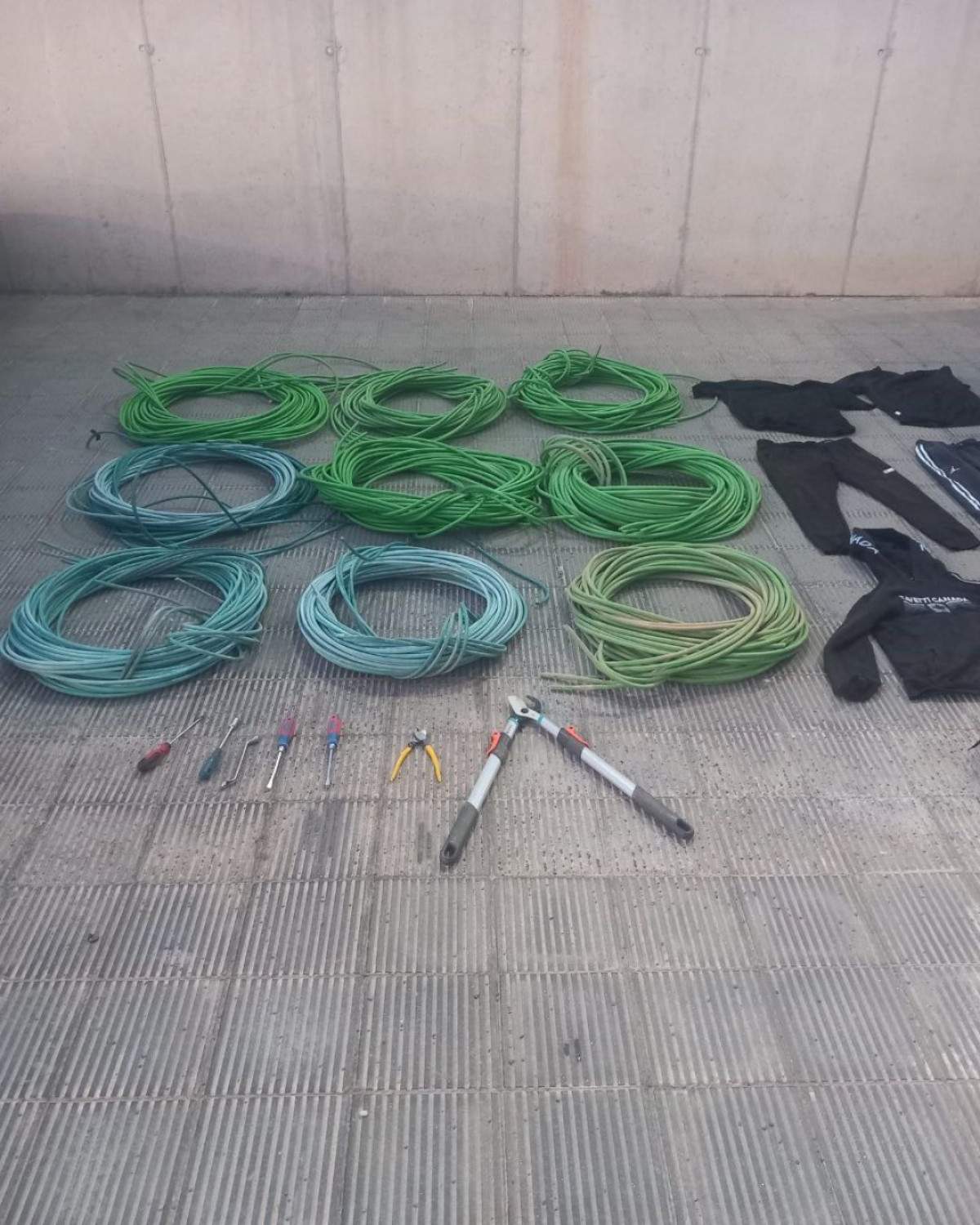 En detenir el cotxe, els agents van procedir a la seva inspecció i van descobrir que transportava més de 200 quilos de cable de coure. Al costat del material sostret, es van trobar també diverses eines especialitzades que haurien estat utilitzades per a tallar el cable.