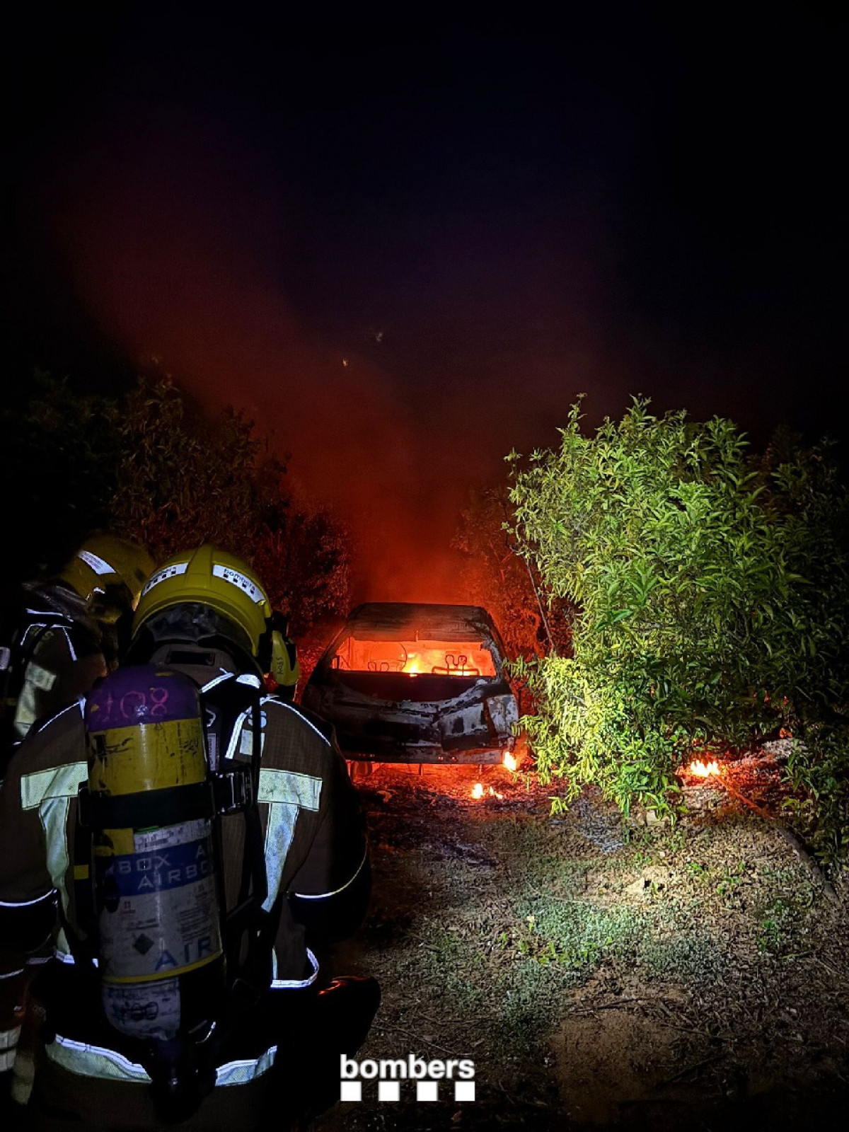 Per part seva, a Alcanar, es va rebre un avís a les 01:45h. En el camí del Pou de la Verge, un turisme va cremar enmig d'un camp de tarongers. Una dotació de Bombers va extingir el vehicle i va controlar el foc que havia afectat alguns arbres de la plantació