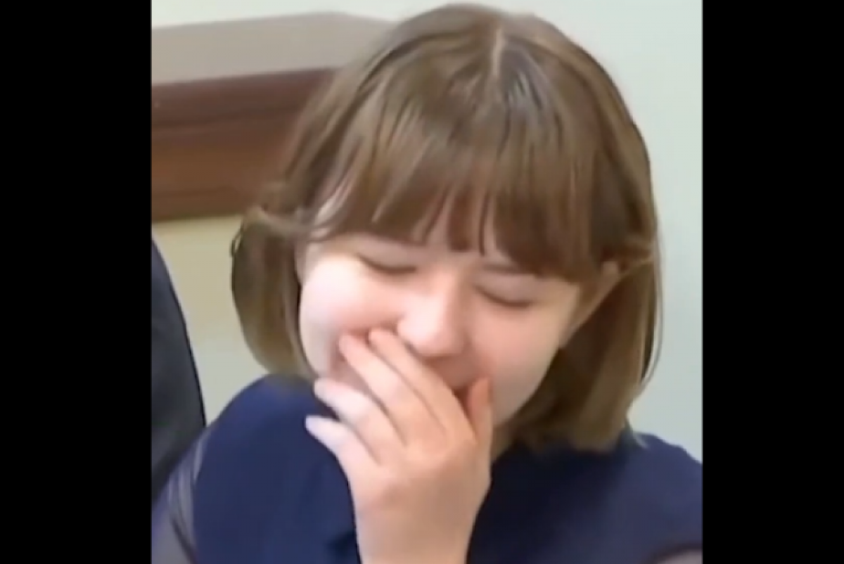 El quart dia del judici, va riure tontament mentre veia el seu equip legal escriure alguna cosa. Ella va intentar reprimir el riure tapant-se la boca amb la mà, però el moment va ser captat clarament en la transmissió en viu.