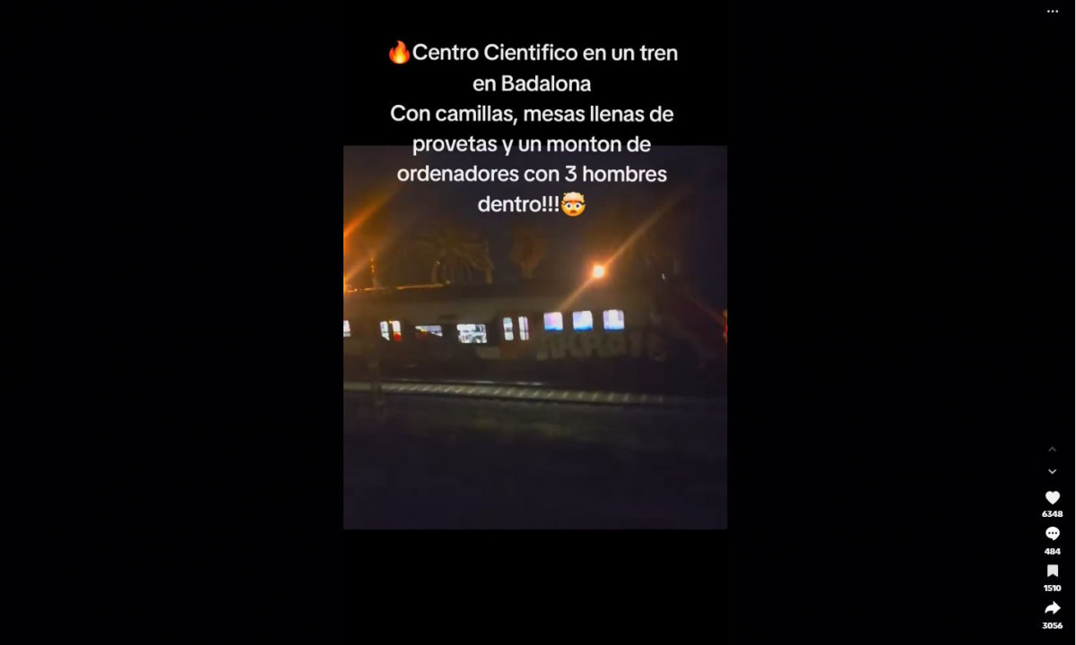 L'usuari @keny.d2 publica un vídeo que mostra un tren a Badalona que, segons ell, alberga un laboratori científic. Els usuaris reaccionen sorpresos davant taules plenes de provetes i diversos ordinadors en el seu interior.