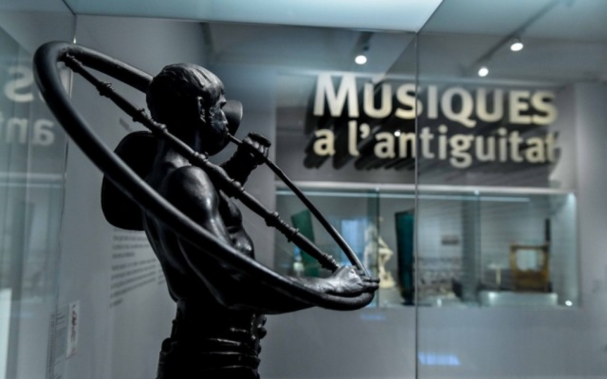 De l'Iran a la Gàl·lia, l'exposició Músiques en l'antiguitat aplega un conjunt excepcional de 373 peces delicades procedents, en la seva major part, de les col·leccions del Musée du Louvre, i també d'unes vint institucions internacionals, entre elles el Metropolitan Museum de Nova York, els Musei Capitolini i el Museu Nacional d'Atenes.