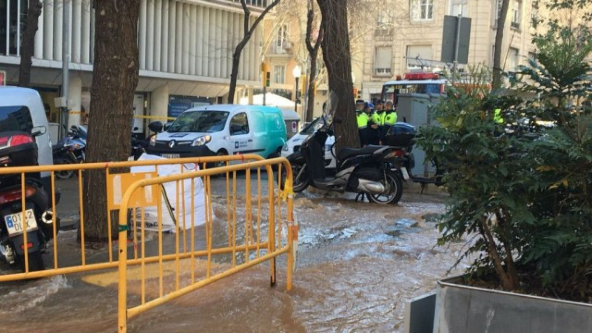 Aigües de Barcelona treballa en l'avaria, que s'ha produït en una canonada gran per la qual circula l'aigua pressuritzada, per la qual cosa s'han abocat molts litres d'aigua.