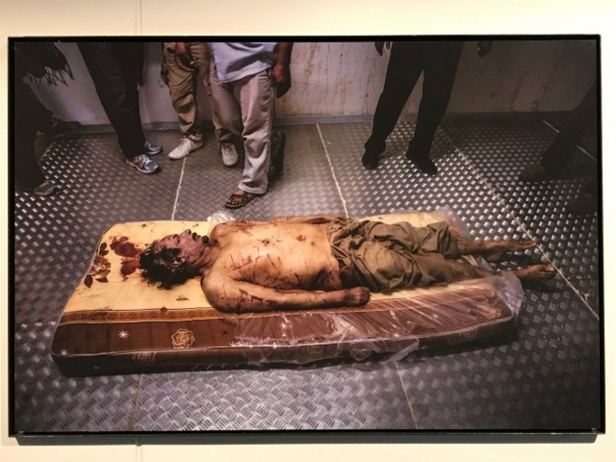 Entre les fotografies de l'exposició, destaca la del cadàver de Moammar al-Gaddafi en un mercat a Misrata (Líbia): "Hi ha fotos que històricament quedaran a la retina, com la del cadàver d'un dictador en un frigorífic de verdures", ha dit.
