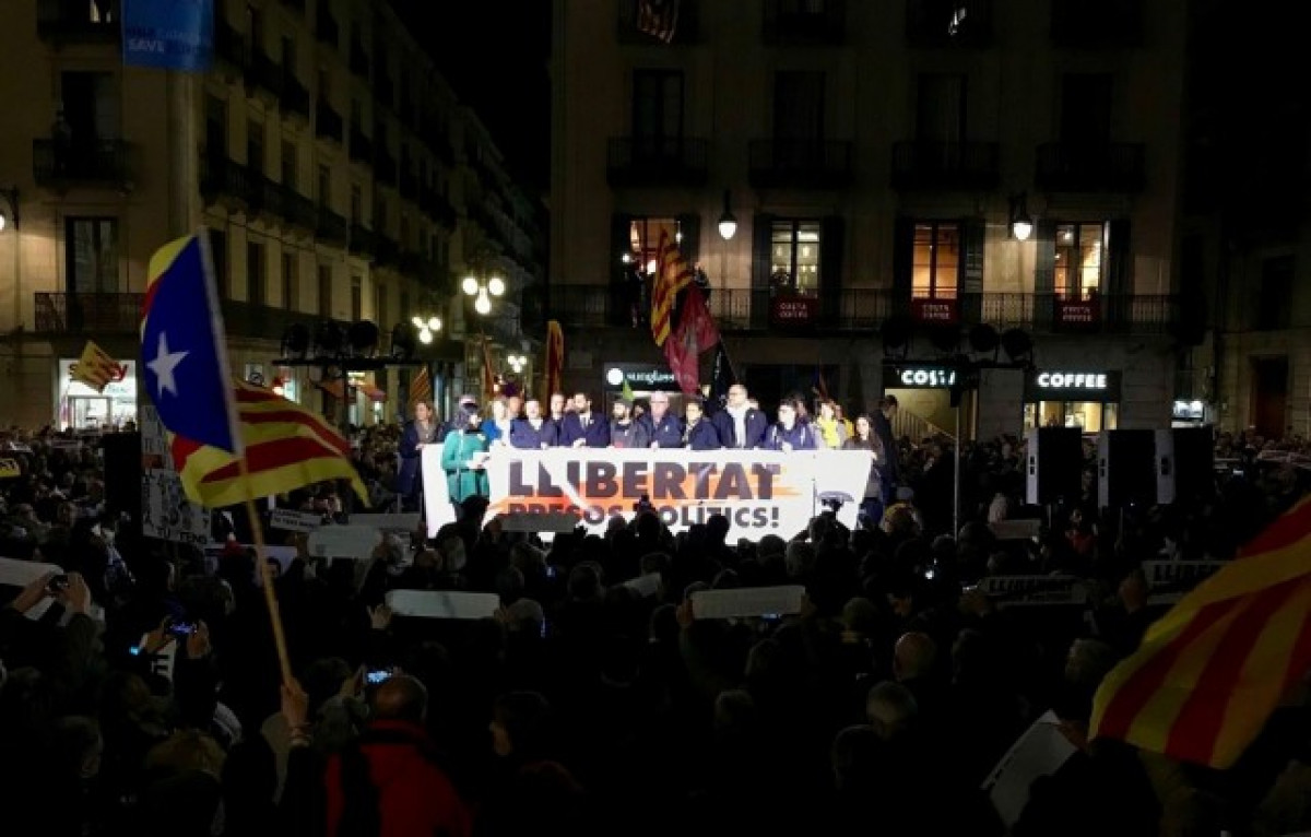 Ho ha dit en la manifestació que han organitzat Òmnium i l'ANC aquest divendres a la plaça Sant Jaume pels quatre mesos que porten empresonats a la presó de Soto del Real el president d'Òmnium Cultural, Jordi Cuixart, i l'expresident de l'ANC i líder d'JxCat al Parlament, Jordi Sànchez.