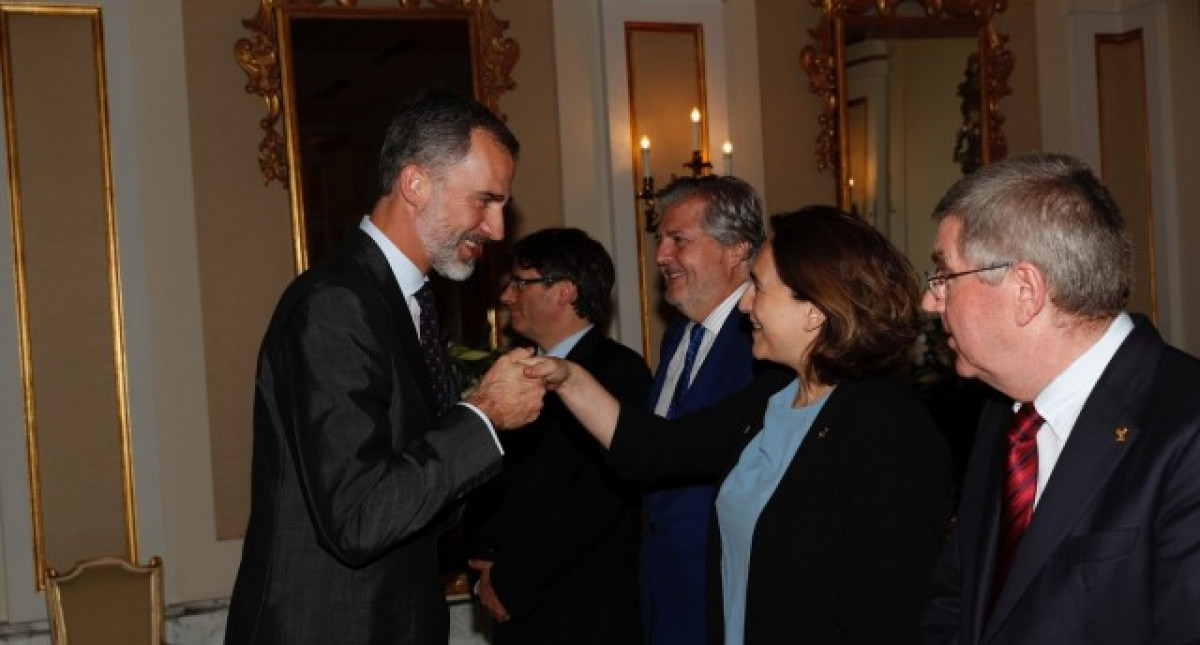 Felip VI i Ada Colau se saluden en una recepció (CASA REAL)