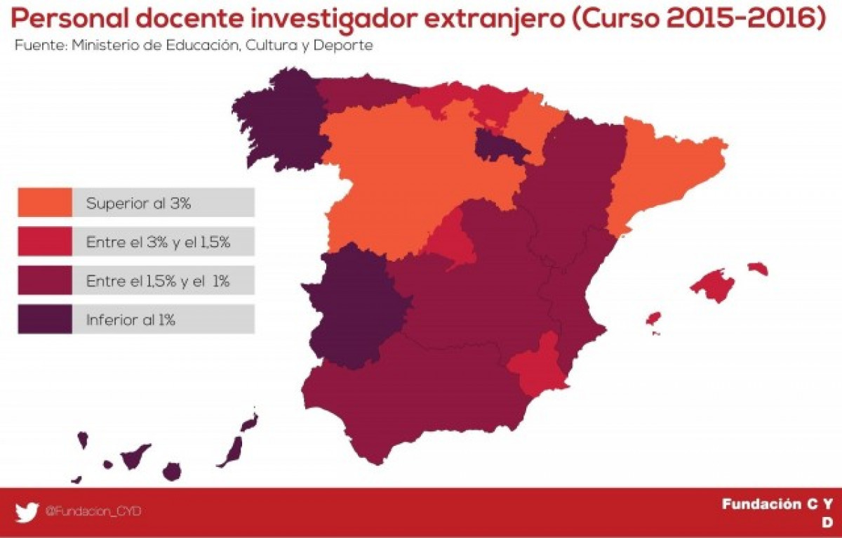 La Fundació CYD, amb dades del curs 2015-2016, assenyala que Catalunya, al costat de Navarra (4,6%) i Castella i Lleó (3,5%) són les úniques que se situen per sobre del 3%.