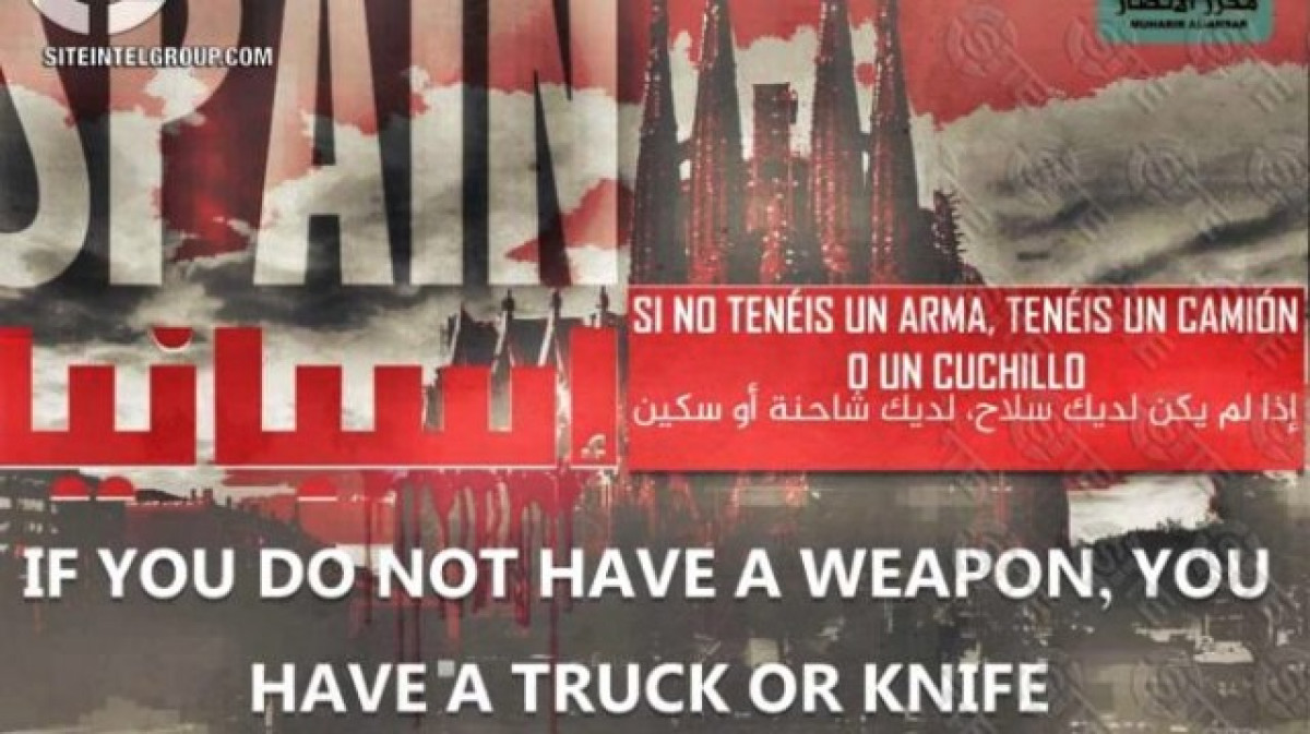 L'Estat Islàmic ha difós en els seus canals de Telegram una nova amenaça posant com a focus de nous atacs a la ciutat de Barcelona. En un missatge difós a través de Telegram, els islamistes demanen als seus acòlits que atemptin contra la Ciutat Comtal: "Si no teniu una arma, teniu un camió o un ganivet".