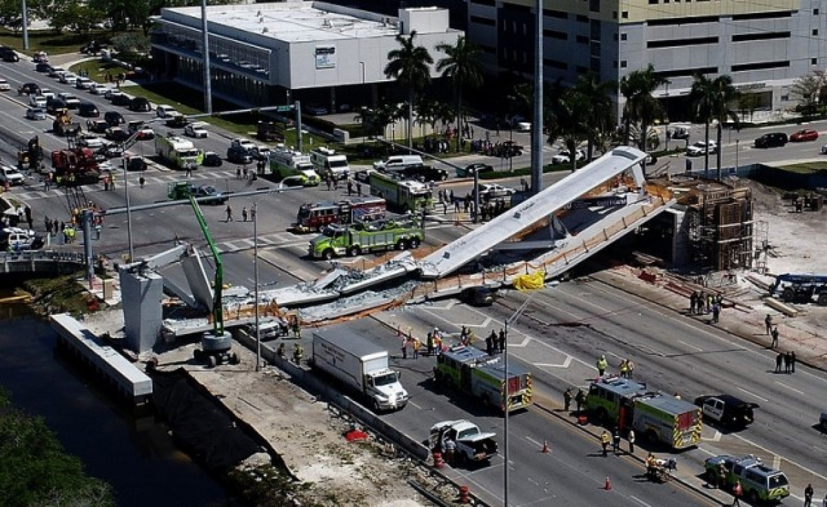 El pont de vianants, que va ser instal·lat el dissabte, ha caigut sobre la carretera, aixafant diversos vehicles. De moment es desconeix el nombre exacte de víctimes i ferits.