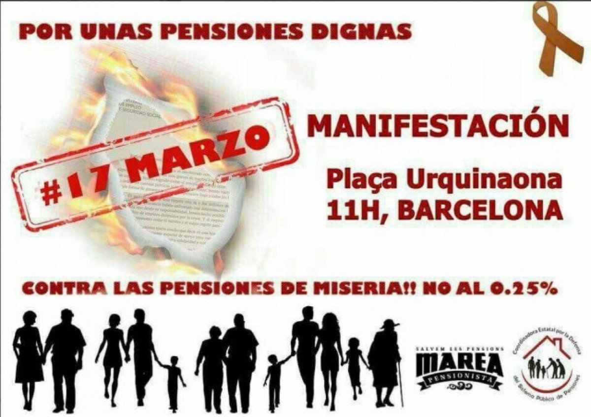 Aquest dissabte 17 de març hi ha més d'un centenar de manifestacions convocades a les principals ciutats del país per exigir "pensions dignes, la revaloració d'acord amb l'IPC i la defensa del sistema públic de pensions".