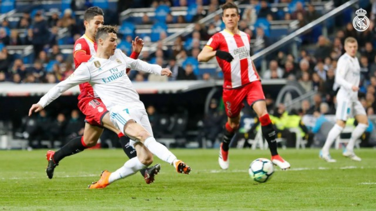 El Reial Madrid ha golejat (6-3) a un Girona que visitava per primera vegada en la jornada 29 de Laliga Santander al Santiago Bernabéu, liderat per un Cristiano Ronaldo que va aprofitar l'entesa entre Lucas Vázquez i Karim Benzema per aconseguir un pòquer de gols i una assistència que van fer inútil el doblet de Christian Stuani per als catalans i permeten als blancs retallar diferències sobre l'Atlètic de Madrid.