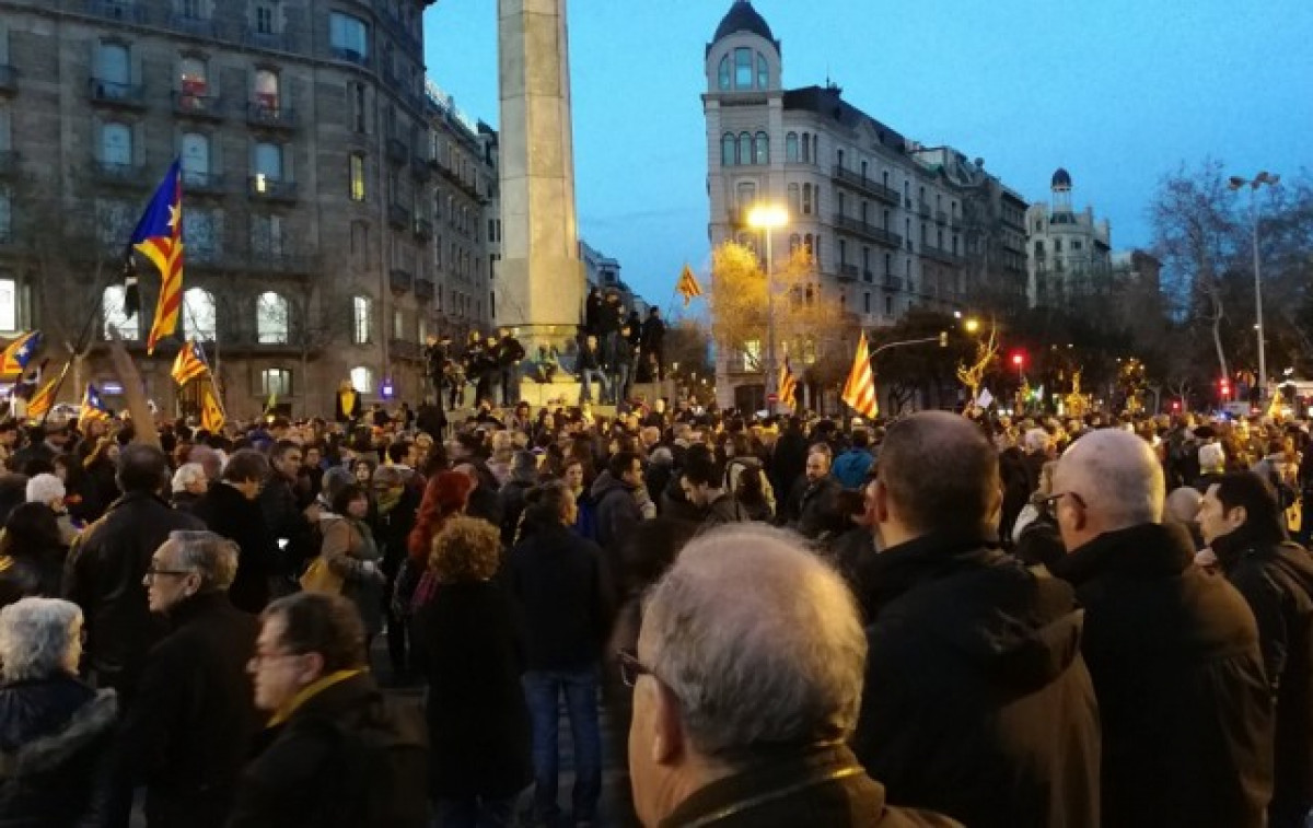 Unes 2.000 persones s'estan manifestant des de les 19 hores a la zona de Diagonal amb Passeig de Gràcia convocats pels comitès de defensa de la república (CDR) en protesta per la presó provisional contra el candidat a la Presidència, Jordi Turull, i altres polítics sobiranistes.