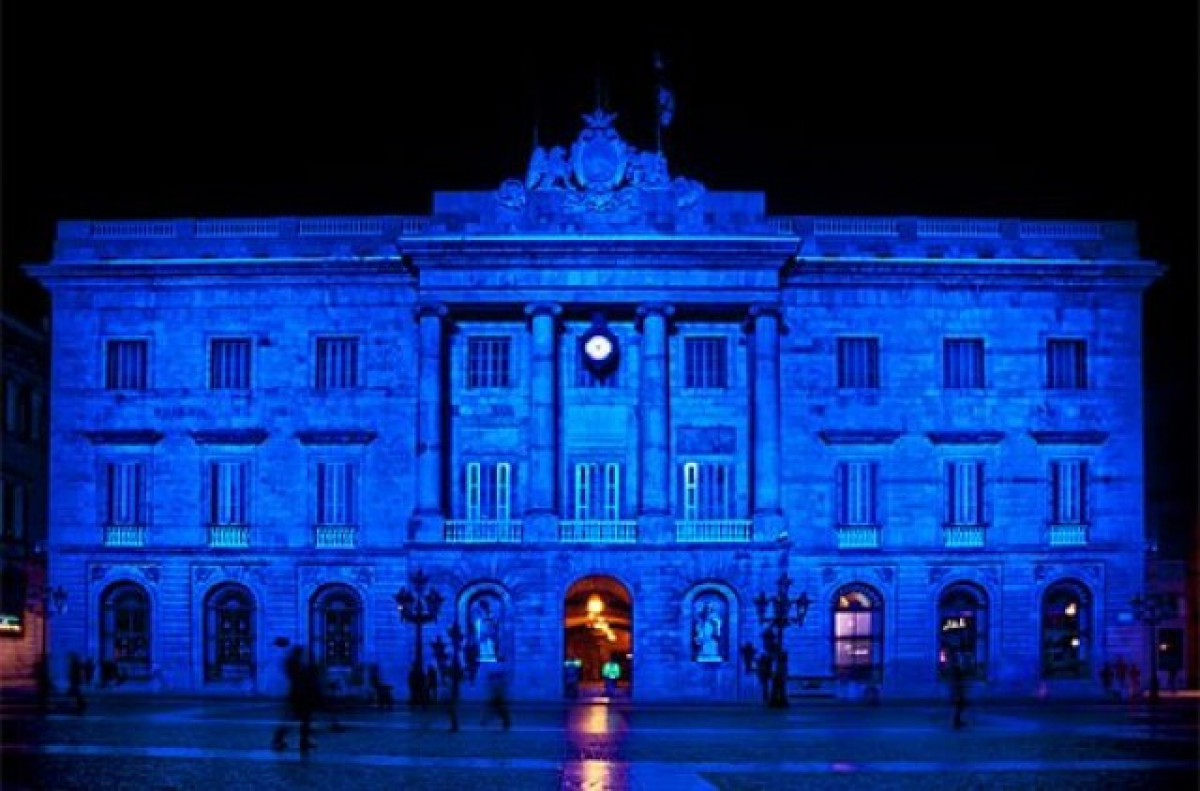 L'Ajuntament de Barcelona il·luminat de blau en suport al col·lectiu d'autistes