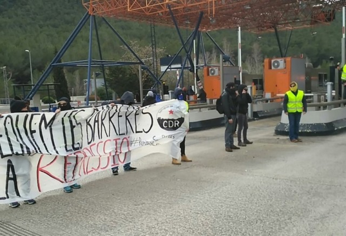 Activistes dels Comitès de Defensa de la República (CDR) han tallat aquest dilluns la C-32 a l'altura de Sitges (Barcelona) i han aixecat les barreres dels peatges perquè els cotxes puguin passar sense pagar.