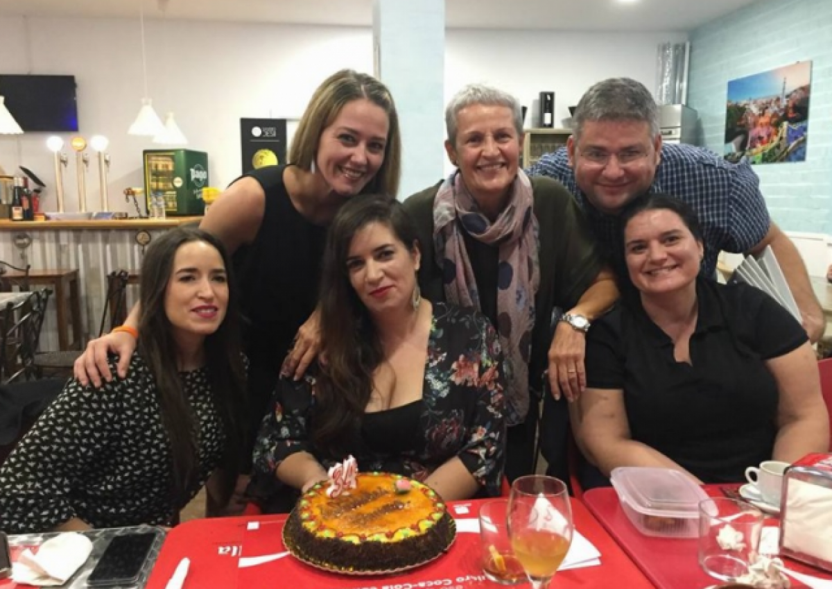 En una imatge del Facebook de la detinguda, surten festejant el 34 aniversari de T. Carrasco, amb ella al mig. A la dreta, es veu E. Tobaruela i C. Puig, ia l'esquerra d'aquests figuren, per ordre, Maria Lluïsa Capdevila, presidenta de la Coordinadora Viladecans contra el Càncer, i la dirigent de Ciutadans, Carolina Torres.