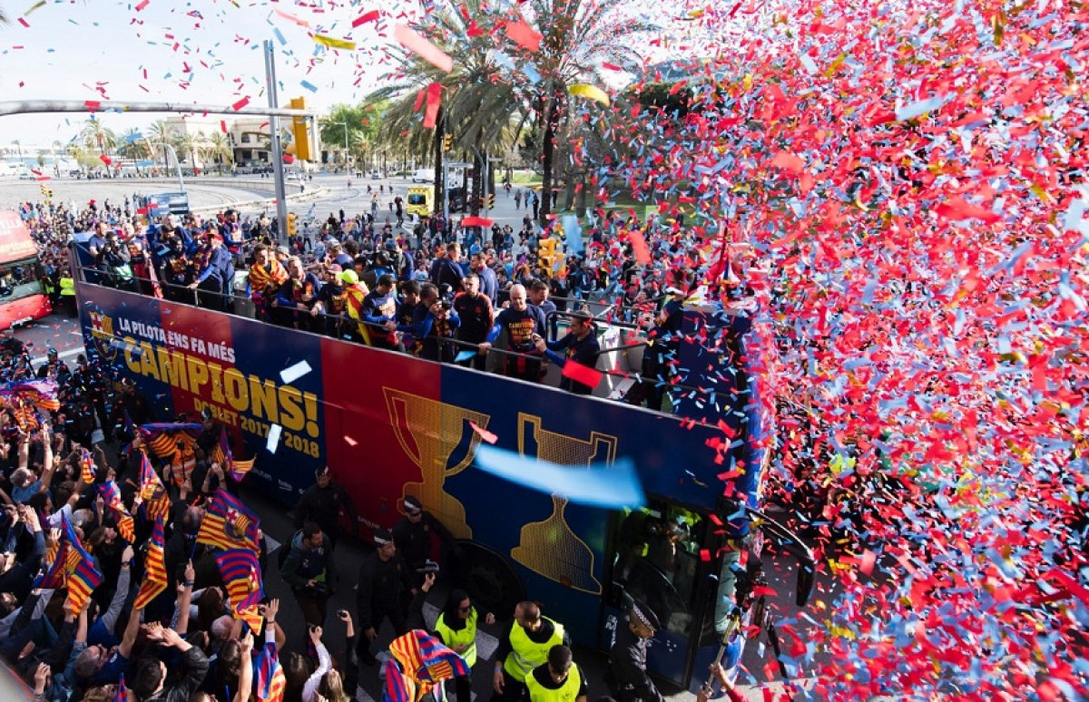 Bona tarda i benvinguts a la cobertura de la celebració pels carrers de la capital catalana de la consecució de la Lliga i la Copa del Rei per part del Barça.