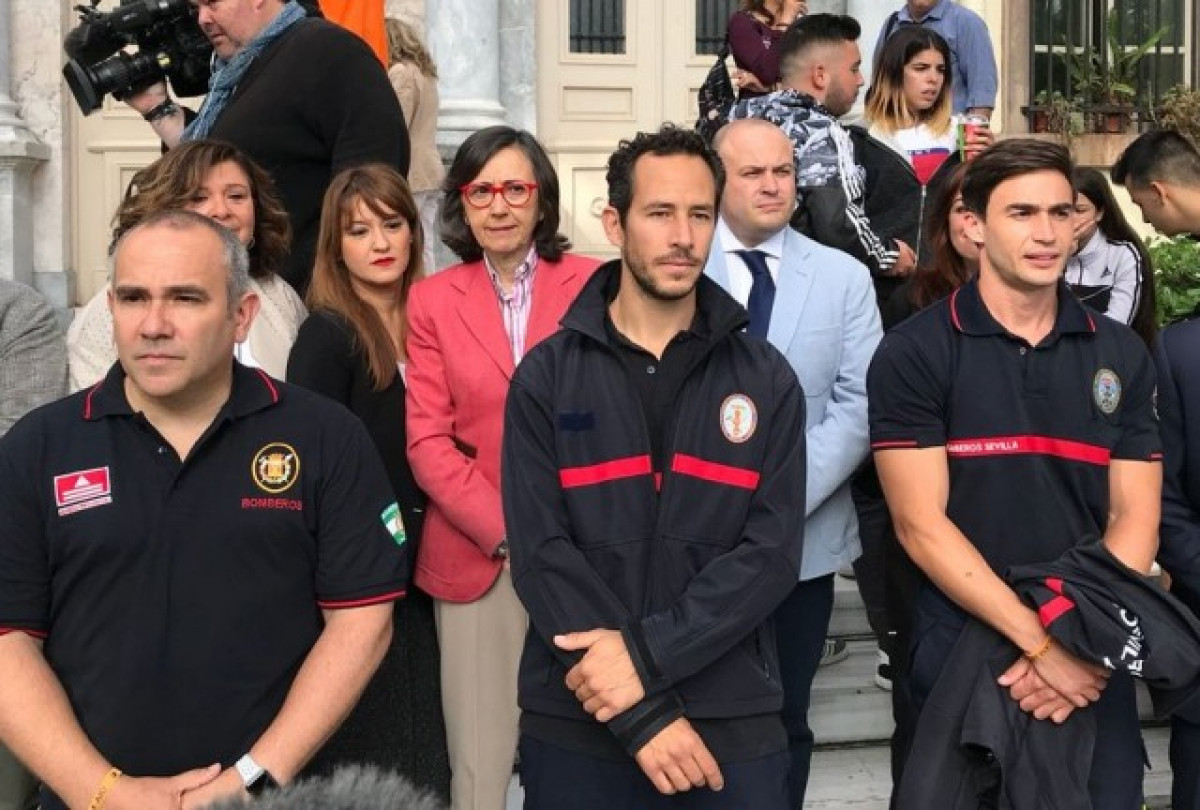 Al costat d'ells hi ha el cònsol espanyol a Atenes i una representació del Parlament andalús, encapçalada per la consellera de Justícia a Interior, Rosa Aguilar, així com responsables de l'Ajuntament de Sevilla.
