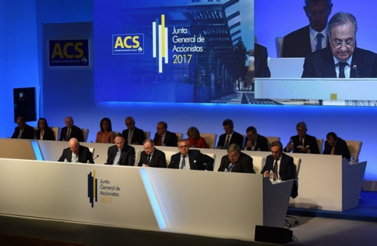 Florentino Pérez, Marcelino Fernández Verds i la resta del consell d'ACS es presentaran davant els socis a la junta després de tancar l'exercici 2017 amb un deute mínima històrica de només 153 milions d'euros, un 87,4% inferior a la de 1.214 milions d' euros comptabilitzada un any abans.