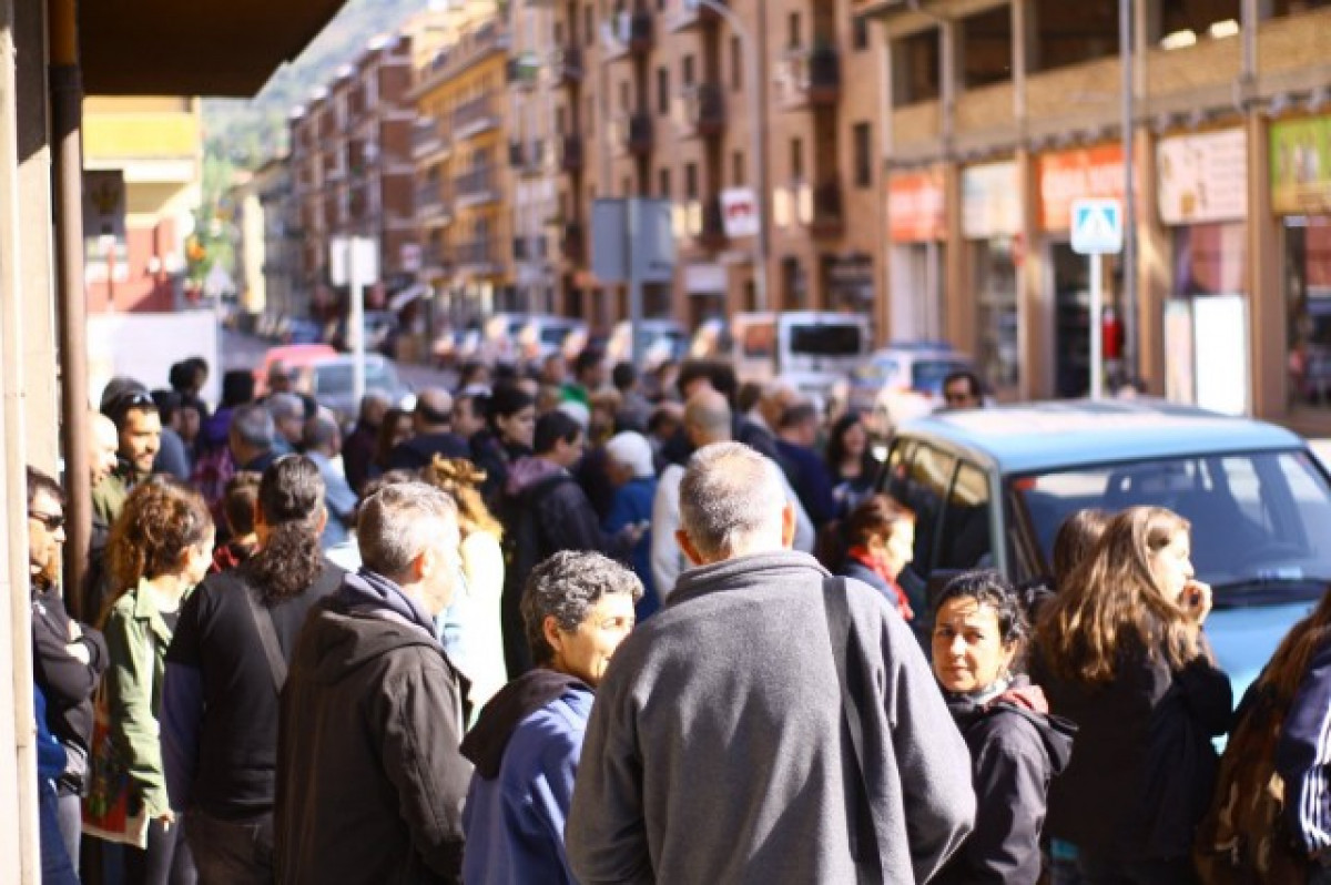 Concentrats al jutjat de Ripoll on han de declarar dos membres de la CUP. / FOTO: @cupnacional