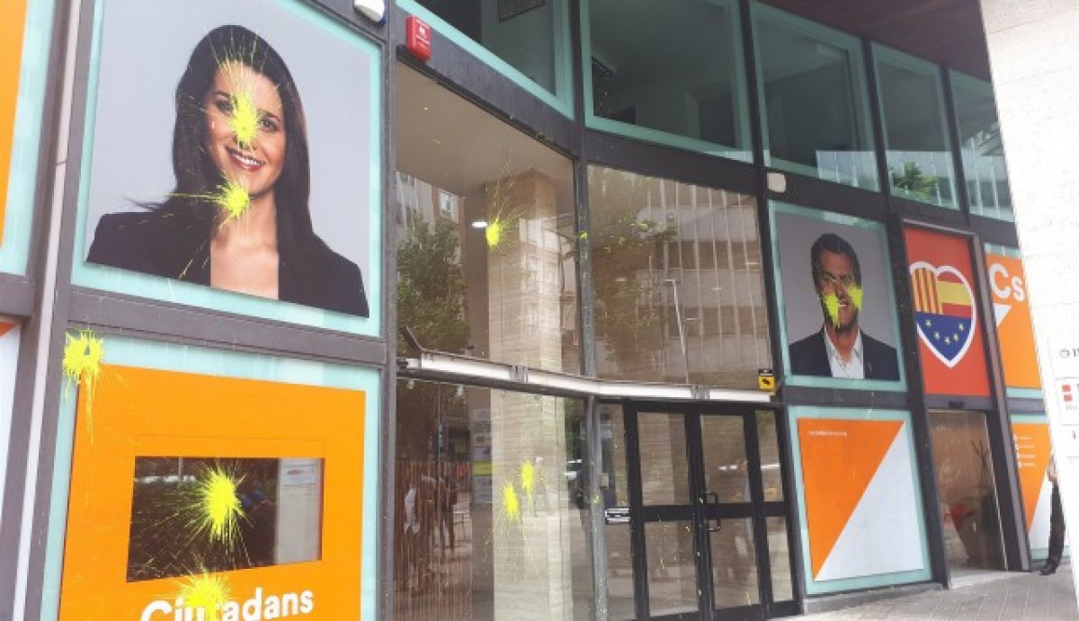 Ataquen amb pintura groga la seu de Ciutadans a Barcelona