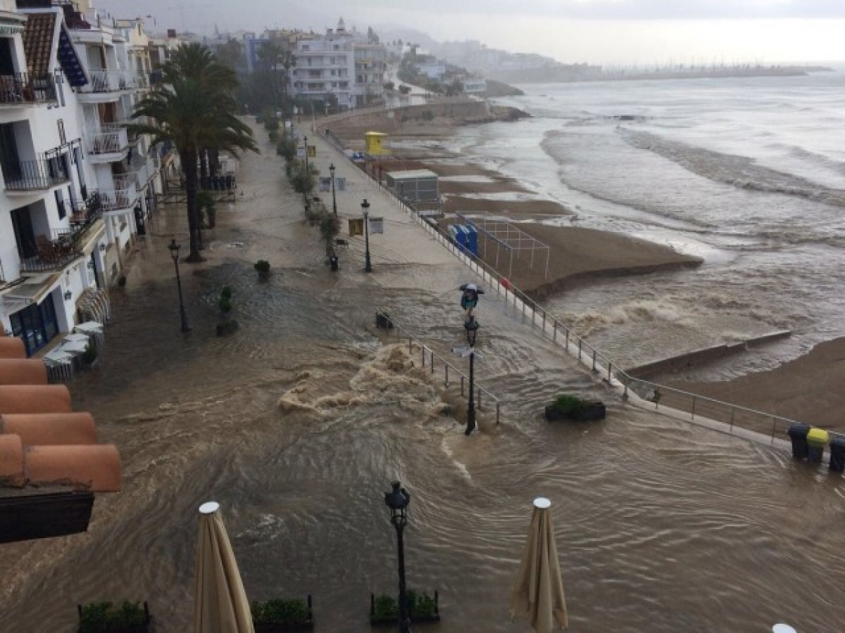 Un dels municipis més afectats a Sitges (Barcelona), on han caigut més de 45 litres per metre quadrat i ha hagut nombroses inundacions en baixos, així com filtracions d'aigua en edificis i talls de carretera.