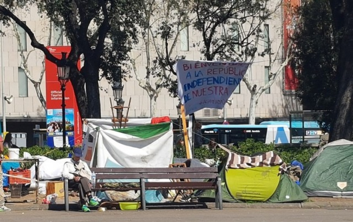 Acampada a plaça Catalunya en solidaritat amb els sense sostre.