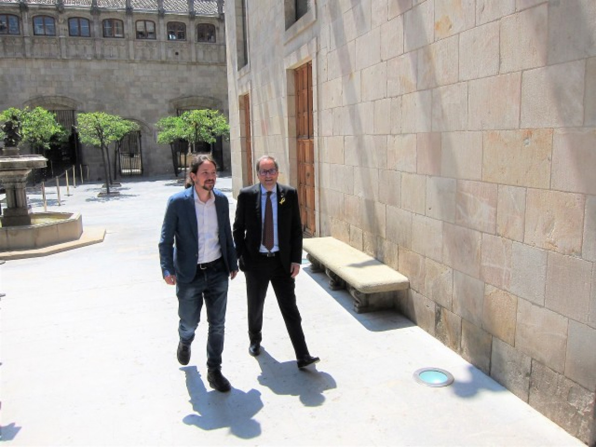 Precisament la situació dels polítics presos catalans va ser un dels eixos de la reunió que va mantenir aquest dilluns Iglesias amb Quim Torra al Palau de la Generalitat, juntament amb la necessitat de potenciar el diàleg entre les institucions de Catalunya i Espanya.