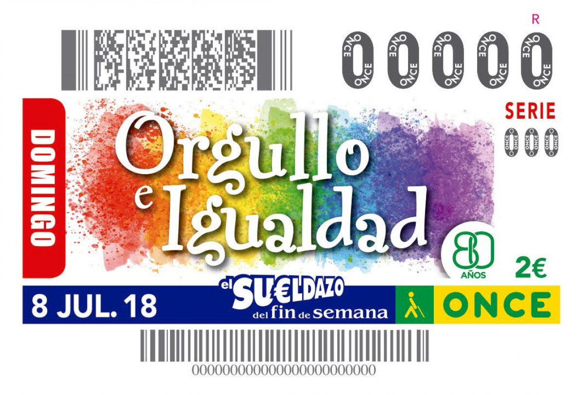 El cupó de l'ONCE de diumenge 8 de juliol estarà dedicat al Dia de l'Orgull LGTBI, que es commemora internacionalment cada 28 de juny i que enguany es reivindicarà als carrers de Madrid el 7 de juliol i a Barcelona amb el ‘Pride’ del darrer cap de setmana de juny.
