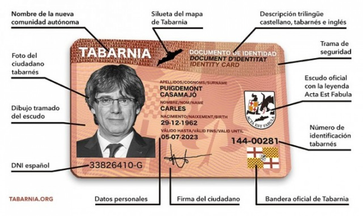 Des d'aquest divendres es pot adquirir el "DNI de Tabarnia" que, segons la plataforma, identificarà els membres del moviment tabarnés, "l'única iniciativa en 100 anys que ha posat realment nerviós al separatisme català", expliquen al seu web.