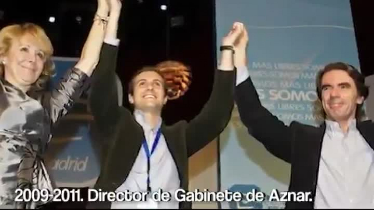 Un nou vídeo arrenca recordant que Casado es va iniciar en la política el 2005 al convertir-se en president de NNGG de Madrid, després va ser diputat autonòmic i cap de gabinet d'Aznar.