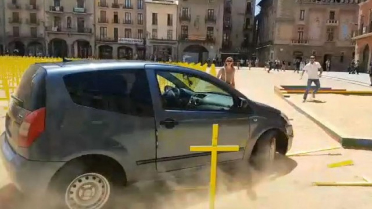 El cotxe va entrar a la plaça, on hi havia desenes de persones, i va començar a esfondrar les creus fins que va abandonar el lloc. La Policia Local ha identificat a l'autor i ha estat citat a declarar.