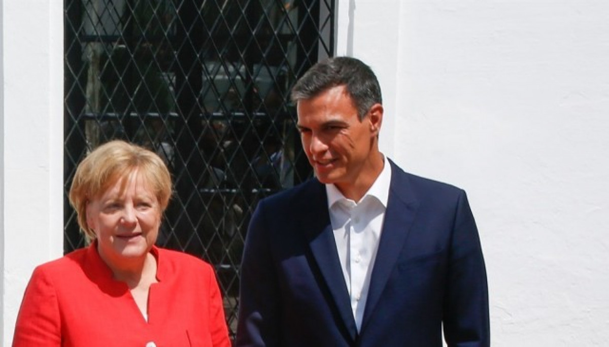El president del Govern, Pedro Sánchez, i la cancellera alemanya, Angela Merkel, han apostat perquè la Unió Europea intensifiqui de forma conjunta la cooperació amb els països de l'Àfrica per fer front a la crisi migratòria i, en concret, s'han compromès a augmentar el suport al Marroc i Tunísia.