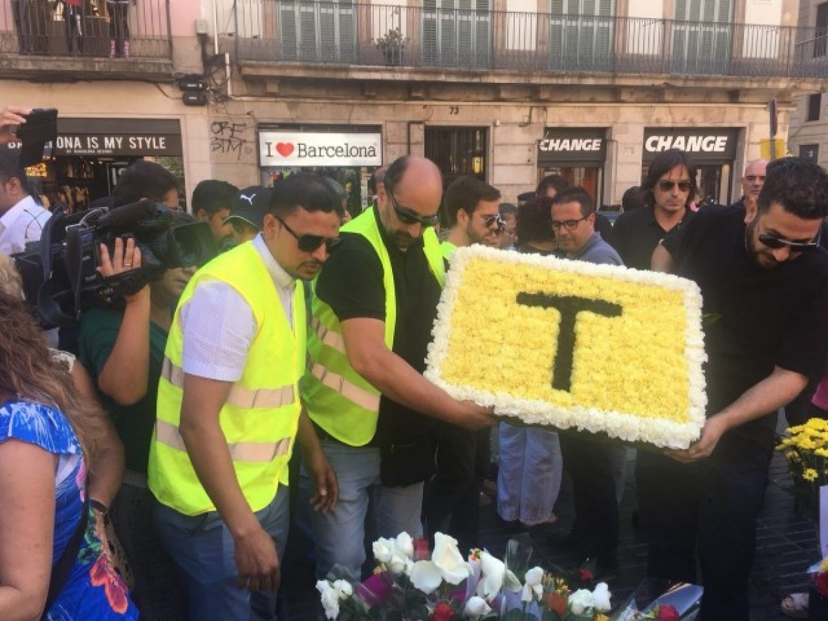 Homenatge dels taxistes de Barcelona a les víctimes del 17A