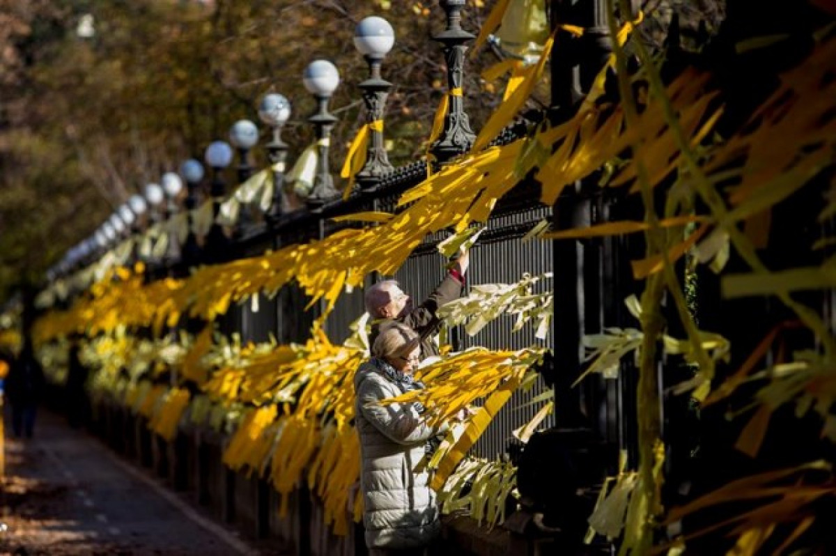 La dona va presentar una denúncia aquest dimarts davant la Policia Nacional assegurant que l'home la va fer caure a terra en dues ocasions i li va causar una desviació de l'envà nasal i una contusió al maxil·lar dret quan va veure que ella havia retirat llaços grocs col·locats en la reixa del parc.