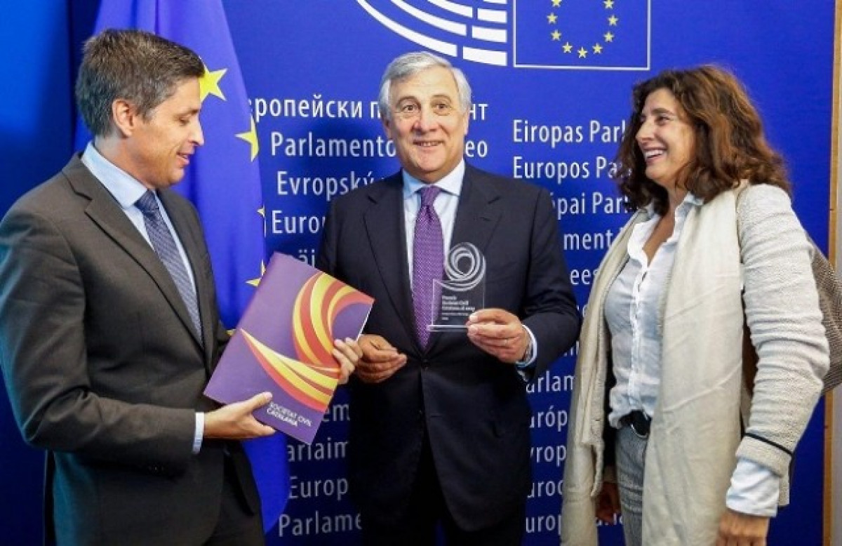 Tajani ha assegurat: "Rebut el premi de Societat Civil Catalana. Un plaer estar amb vosaltres, exemple de compromís amb la llibertat, tolerància i europeisme".