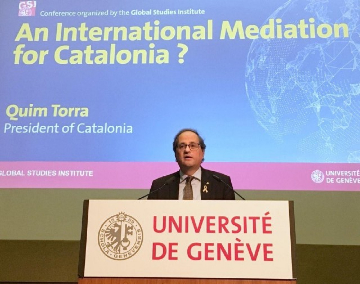 Des de Ginebra (Suïssa) i a través de la conferència 'An International Mediation for Catalonia', ha exposat: "No sóc aquí per posar pressió a la federació suïssa, sinó per explicar per què una mediació internacional seria tan necessària".