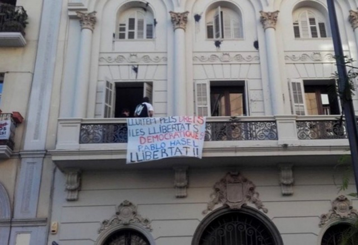 Un grup de joves penja al PSC de Lleida una pancarta per la llibertat de Hasel. El PSC denunciarà "l'assalt d'un grup de brètols" i la intimidació a les empleades.