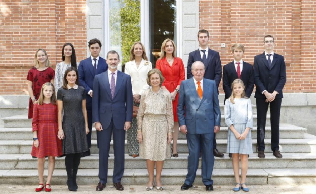 La Casa del Rei ha difós una fotografia en què es pot veure, posant junts, als Reis Joan Carles i Sofia amb els Reis Felipe i Letizia i les seves filles i, en una fila superior, les infantes Elena i Cristina i els fills d'ambdues .