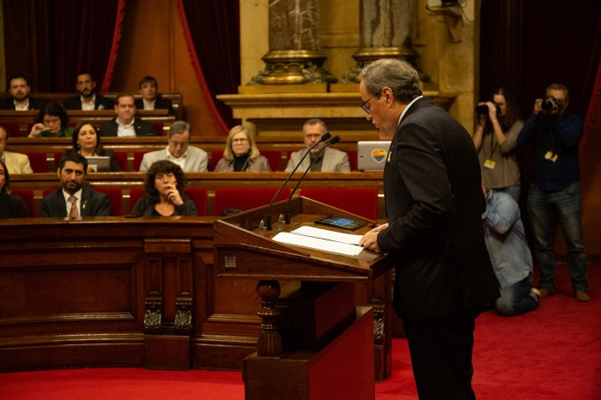 En la seva compareixença davant la cambra catalana, Torra ha dit que des del Govern català "retirem qualsevol tipus de suport al Govern de Pedro Sánchez".