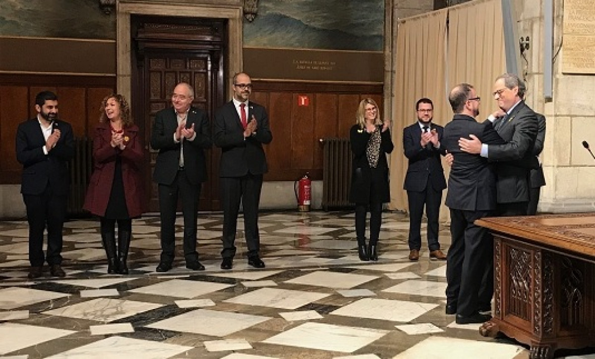 En l'acte de presa de possessió en el Palau de la Generalitat, el president català, Quim Torra, ha explicat que Bosch ha de realitzar la seva tasca "com a ministre d'Afers exteriors del país".