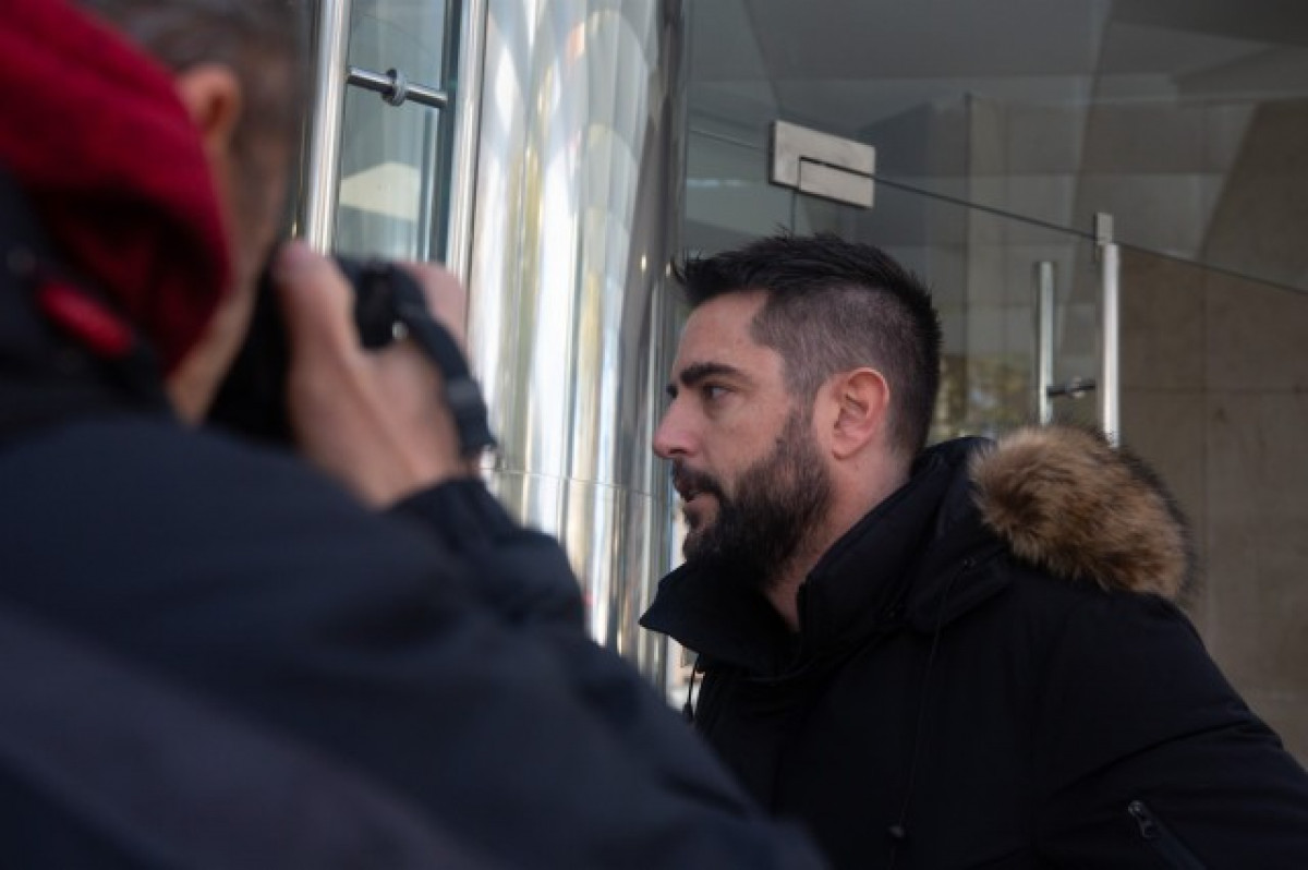 Diverses persones l'increpen a la sortida dels jutjats: "fes-ho ara si t'atreveixes", li han inquirit alçant la bandera espanyola.