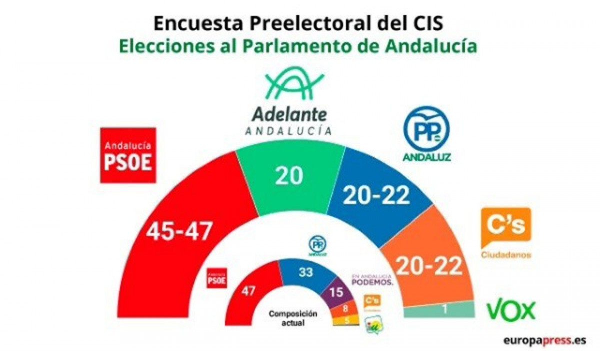Els resultats de les eleccions al Parlament d'Andalusia contradiuen l'enquesta del Centre d'Investigacions Sociològiques (CIS) del passat 14 de novembre, que no va preveure la caiguda del PSOE ni la força amb la qual Vox ha entrat en el legislatiu autonòmic.
